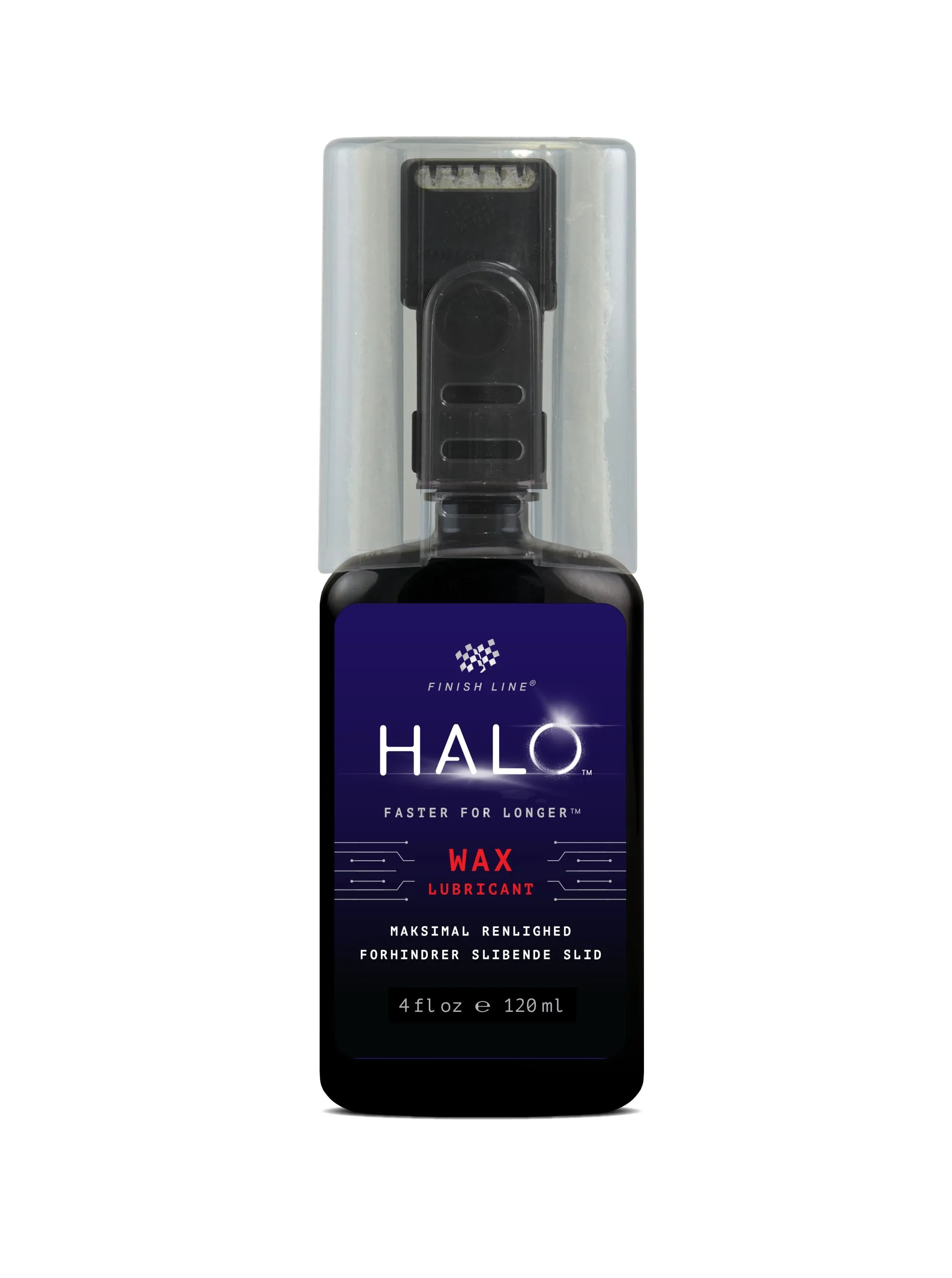 HALO™ WAX är designad för att dramatiskt förbättra drivlinans prestanda genom att minska friktion och slitage orsakat av slipande föroreningar. Tre ingredienser på elitnivå ger överlägsna resultat: högraffinerad paraffin, sfärisk volfram och keramiska bornitridplattor.Högraffinerad paraffin skapar en robust, beröringsfri beläggning som avvisar vatten, tar bort friktionsorsakande, nötande ämnen och föroreningar och praktiskt taget eliminerar kedjesmuts.Sfärisk volfram har en egenutvecklad ihålig kärna för att minska vibrationsfriktion orsakad av trampning med högt vridmoment. Mikronstorlek och sfärisk form hjälper till att minska glidfriktionen genom att skapa en rullande effekt på kedjans yta.Keramiska bornitridplattor täcker kedjan för att bilda en skyddande non-stick beläggning. Denna keramiska beläggning fungerar synergistiskt med sfärisk volfram för att minska slitaget och hjälpa till att förlänga livslängden på dyra drivlinekomponenter.HALO® smörjmedel appliceras med Finish Lines nya patentsökta Smart Luber™. Smart Luber™ representerar ett paradigmskifte i hur cykelsmörjmedel appliceras på en kedja. Det säkerställer att varje länk är smord, att den inte läcker, att inget smörjmedel går till spillo och att ingen tid går förlorad när man smörjer en kedja för maximal prestanda.Instruktioner:Skaka kraftigt och applicera på en ren, torr kedja och låt torka HELT (6-12 timmar). Applicera en andra beläggning för maximal prestanda. Efter att ha kört i våta förhållanden bör du torka kedjan och applicera smörjmedlet igen. För optimal applicering bör HALO™ WAX vara <50°F/10°C.
