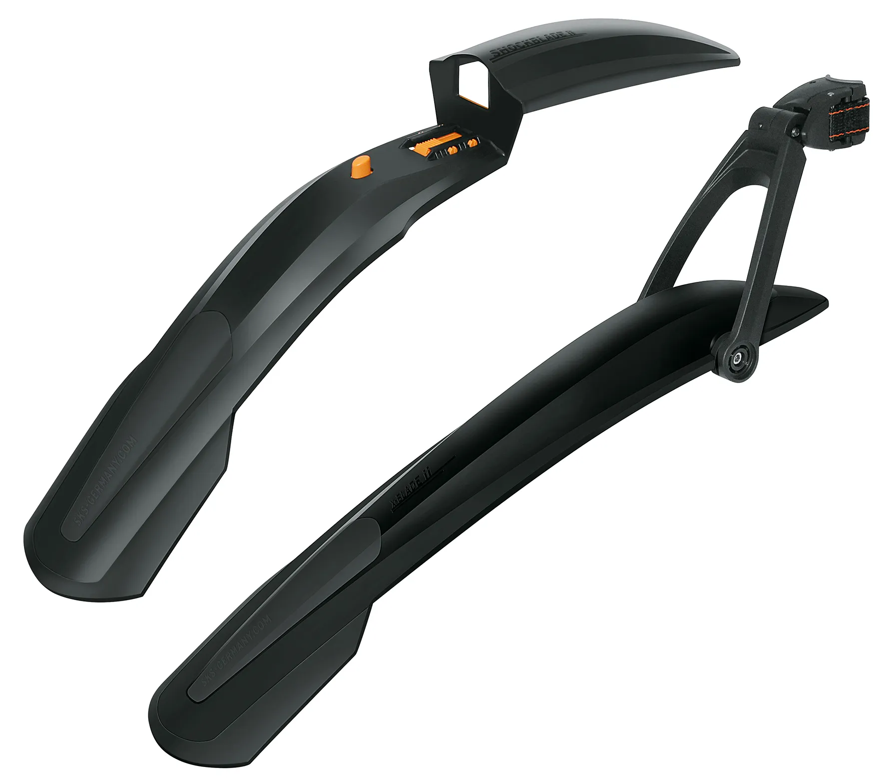 Den högkvalitativa 2-komponent X-BLADE-skärmen för mountainbikes ger optimalt skydd mot smuts och vatten tack vare den justerbara frontspoilern och den extra långa bakspoilern. Skärmen är gjord av mjukare plast, och är därmed mer flexibel. Tack vare det enkla snabbfästet kan SKS-skärmar monteras på nästan vilken sadelstolpe som helst med hjälp av kraftremmar och kan optimalt anpassas till mountainbiken med 2-länkstekniken.